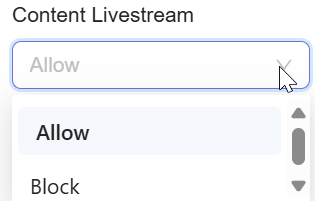 - From the Content Livestream dropdown menu, select either the Allow or Block option.